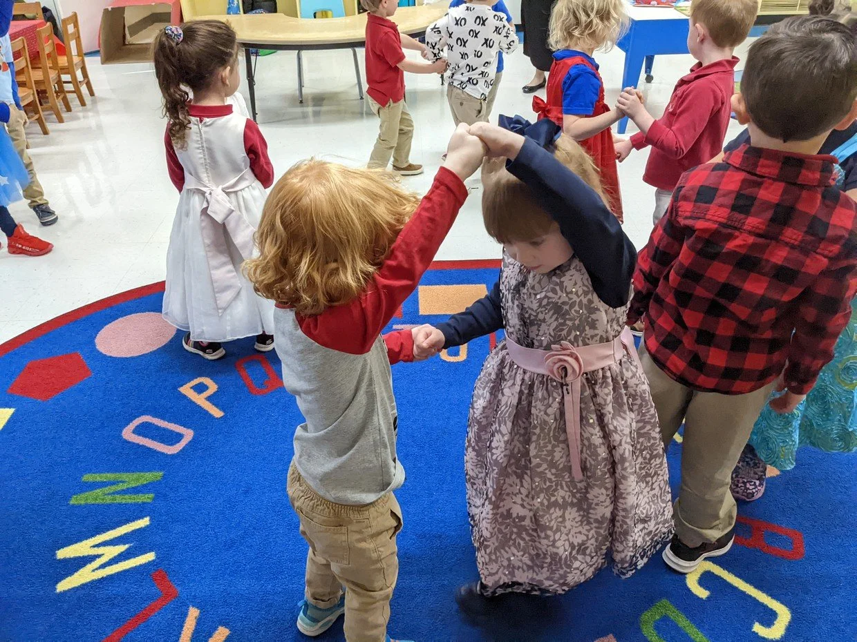 What a great time we had at the Valentine Ball ! Mrs. Amanda's class came to visit and we danced all morning!