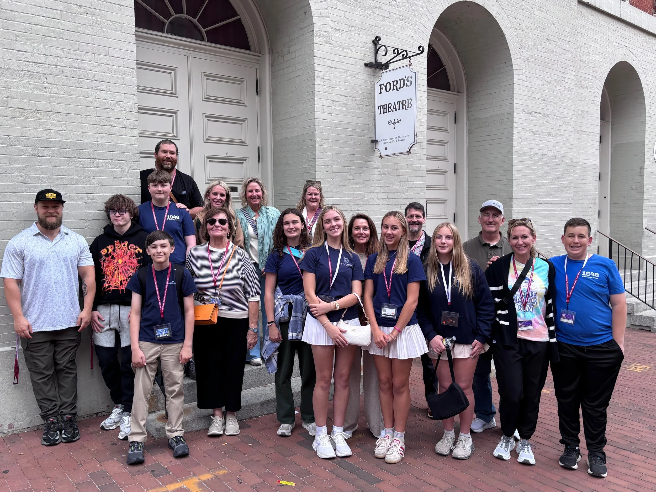 8th grade students, teachers, and parents outside of Ford’s Theatre (Washington, DC 2026).