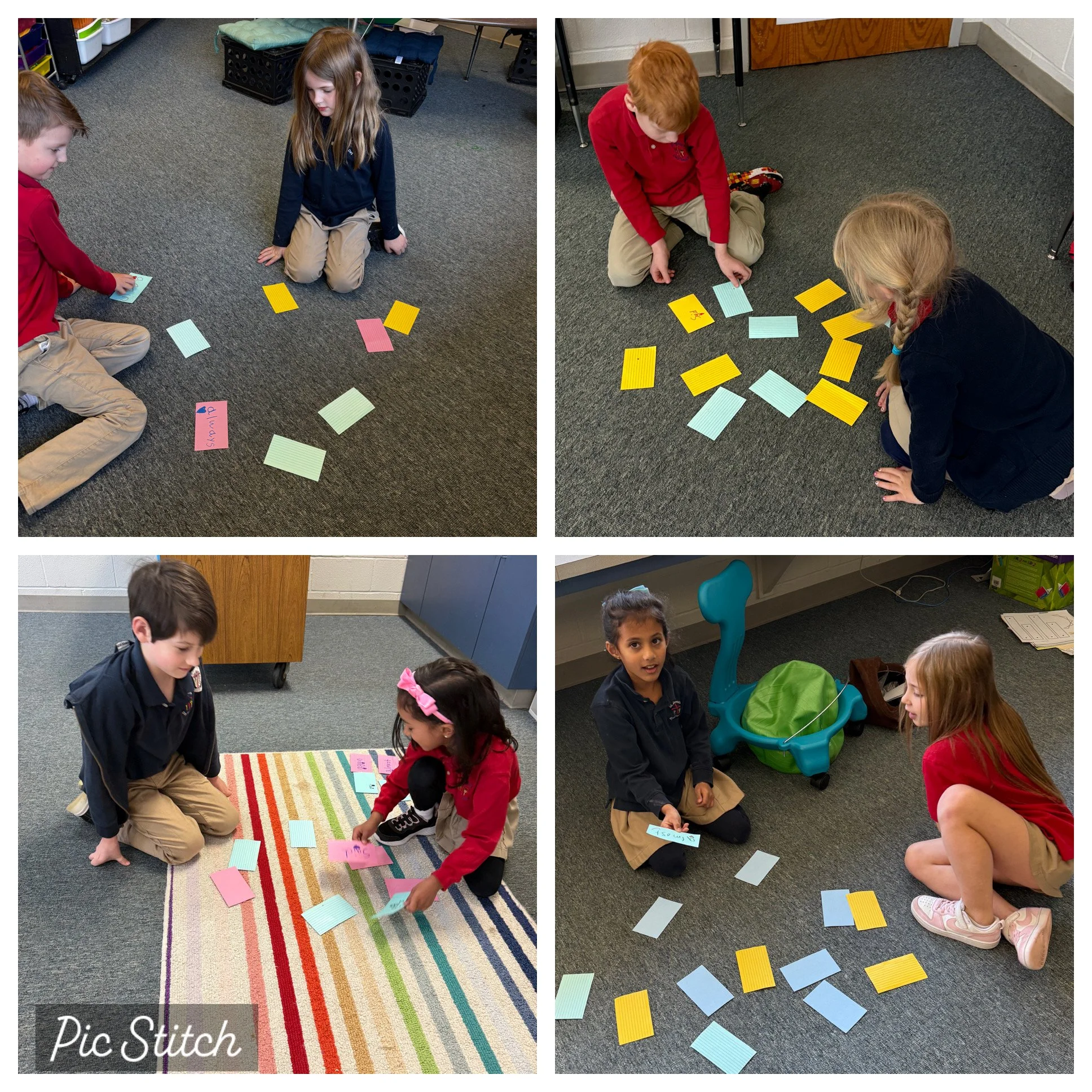 Who loves a game of Memory Match?! First graders do! Each week students write their “irregular” words on index cards and practice reading and spelling in fun ways all week. One of their favorite ways to learn is a memory competition with classmates! This activity only takes a few minutes to complete and gets the students moving about the room. We love this activity on cold winter days.
