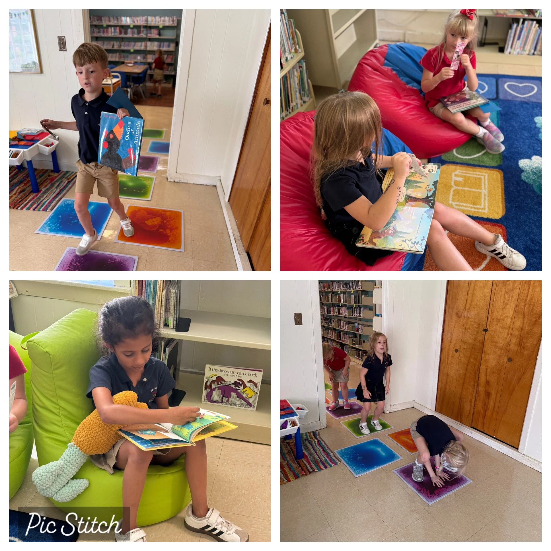 Wow! Our school library was upgraded over the summer and the first visit of the school year did not disappoint. Students were welcomed into the updated library by colorful seating and an interactive hopscotch pad to enter and exit the reading area. The library also has many new and exciting books to choose from and students cannot wait for their next visit.