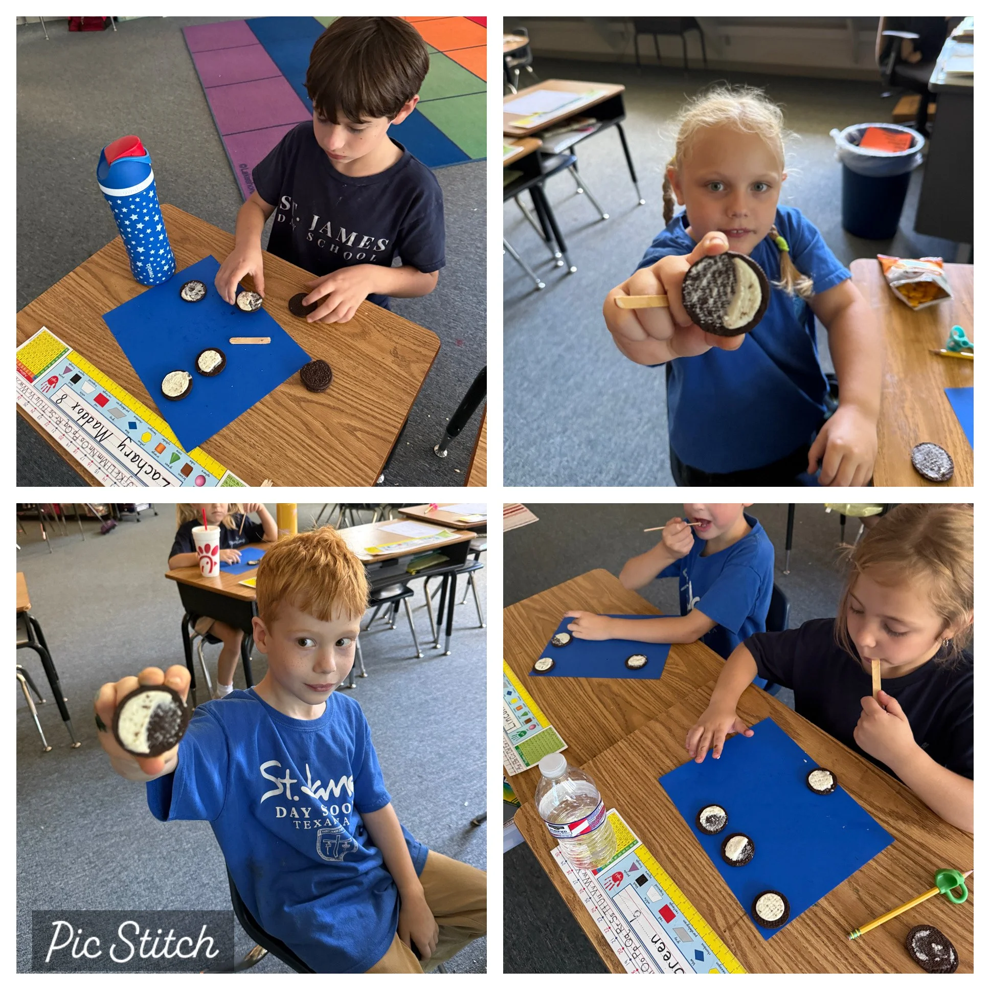 STEM Fridays are always fun in first grade. Students learned all about the phases of the moon and put their knowledge to the test with a tasty lunar model. Students demonstrated a new moon, quarter moon, crescent moon and full moon by scraping away (and eating) cookie icing. Who knew science could be so delicious!