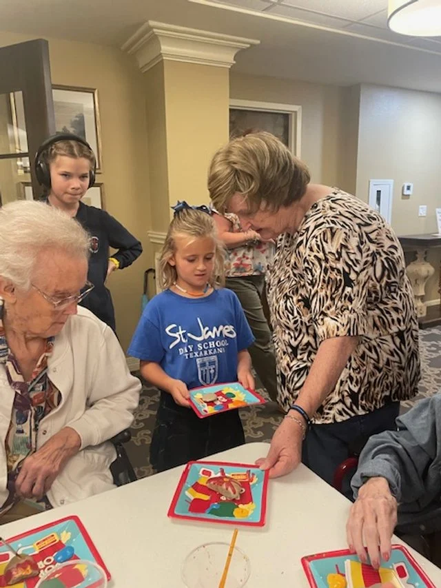 This year, first and sixth grade have partnered with Cornerstone Retirement Community for our community service outreach. At St. James we put a high value on community service. We teach our students, the youngest class of three year olds to the eighth graders, that it is important to be involved and give back to the community. Each grade level reaches out to a local organization and has multiple projects with them throughout the year. Sometimes it’s collecting needed supplies or raising money, but primarily we focus on giving the gift of time. In the past, pre-Covid, first grade would partner with a retirement home or nursing home. We’ve read to the residents and often sing songs around various holidays. This year we are able to be fully back and active like before. First and sixth grade visited Cornerstone and painted rocks with the residents. It was so special to see these young student not only working together, but with an elderly person too. I told first grade that our goal was to bring joy to other’s lives and brighten their day. It was a great experience for everyone involved. We are looking forward to the next community service project.