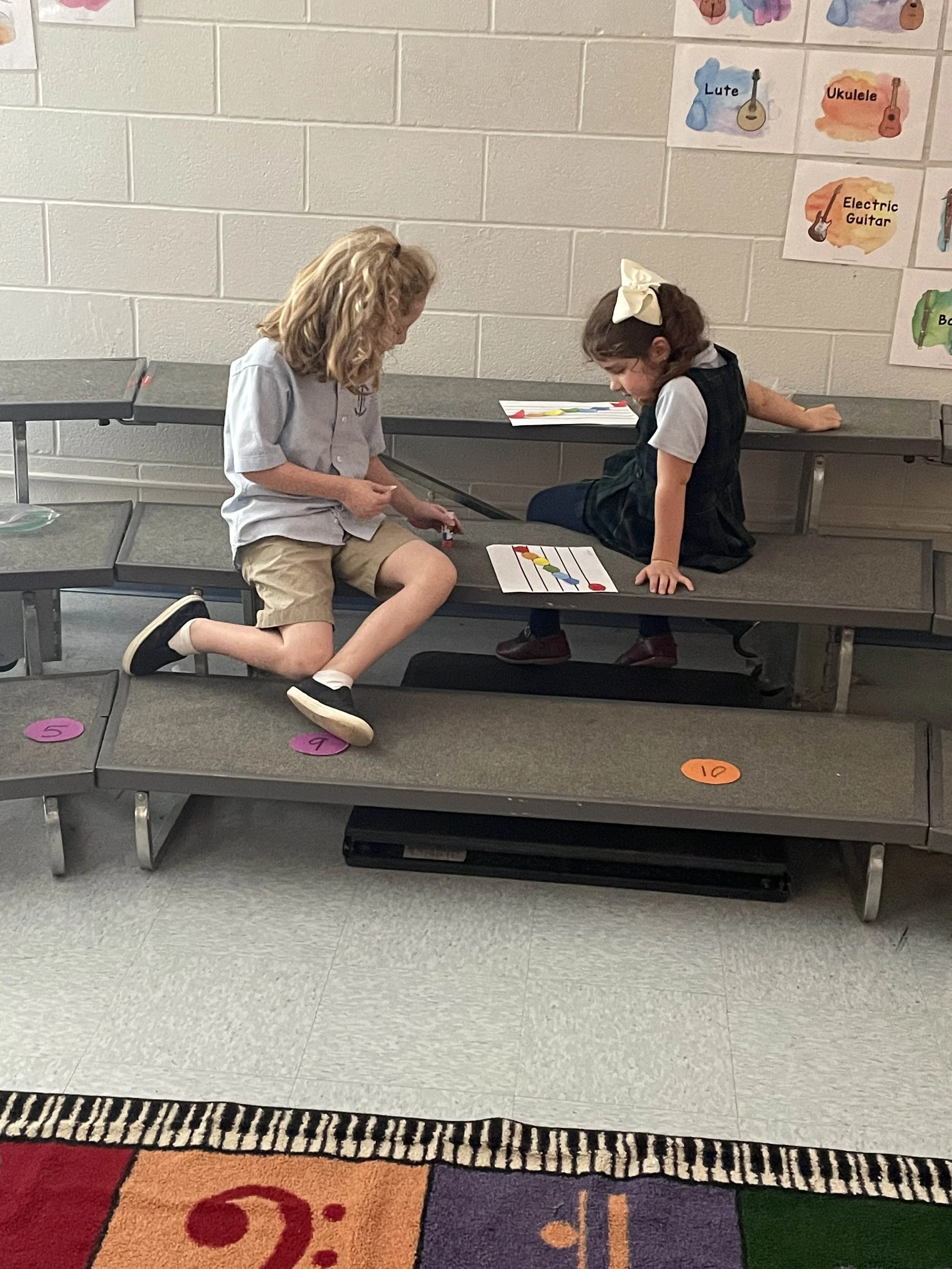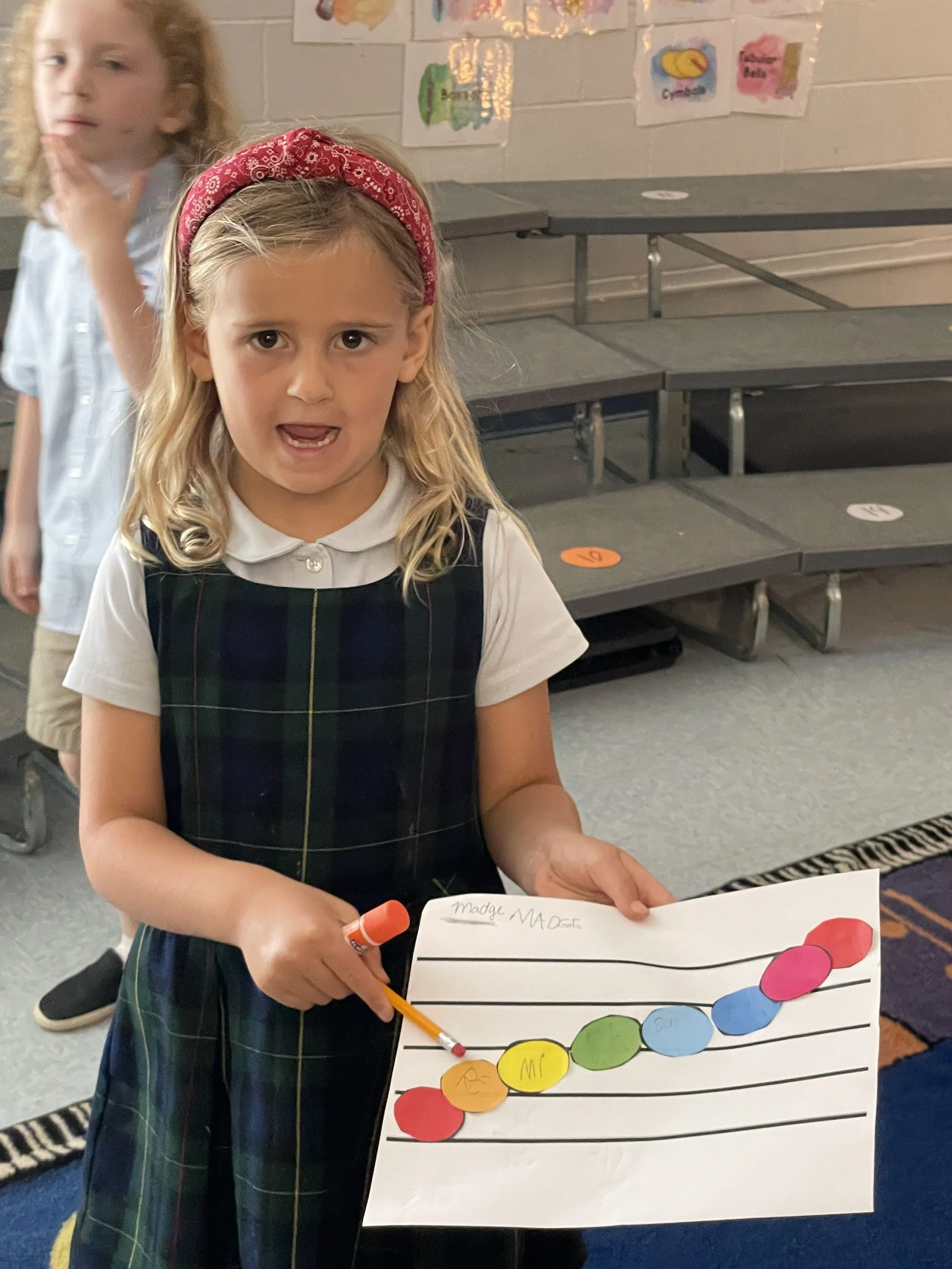 Primary: We celebrated back to school by coloring, singing and doing movement to, “The Wheels on the Bus.” We learned about the tambourine and played along to some fun Disney hits. This week we sang about Humpty Dumpty and played with our Egg Shakers. They had to be very careful not to drop and crack Humpty Dumpty. We had a blast!