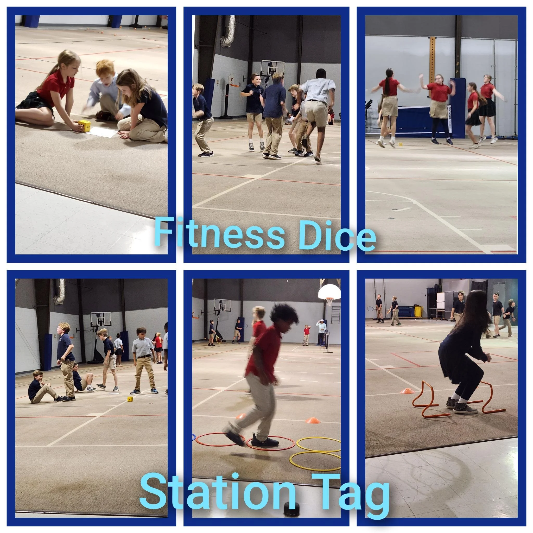 Fitness Dice is something new to the students. Each group has 1 big, foam die that they will roll. The number it lands on will tell the the exercise to do and how many. We have added that to our warm ups and class activity. I am in the process of adding a few different exercise lists so we can change cards to keep the game progressing. The students also have an activity called Station Tag. When the students are tagged, they go to the station that is set up at the front of the gym. After they complete the station, the students are allowed to re-enter the game. The objective to is keep moving, reaching their heart target zone while working and building muscles. Our students LOVE PE! We work the whole body with games and activities.