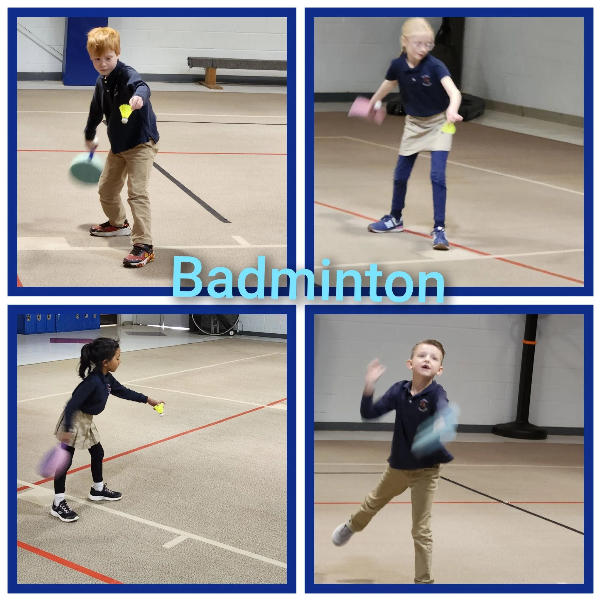 Pictured here are some of our 1st graders learning how to serve a birdie and how to return a serve. This is very exciting to watch as they learn and grow.