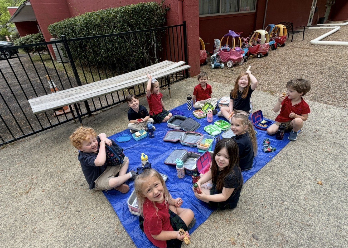 Who wouldn't love the opportunity to bask in this delightful spring weather? Both Primary classes took advantage of the beautiful day and enjoyed a picnic lunch on our playground.