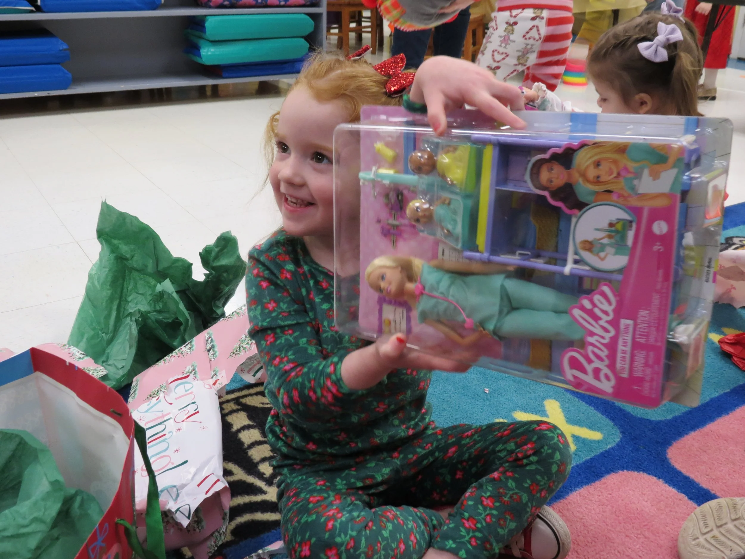 What a fabulous week we have had! To finish up our tree unit, we painted landscapes and made lemonade. We also worked on math skills by playing a game of “Which has more?” The highlight of the week though, was a visit from Santa! The children opened presents in their cozy pajamas and had a treat.