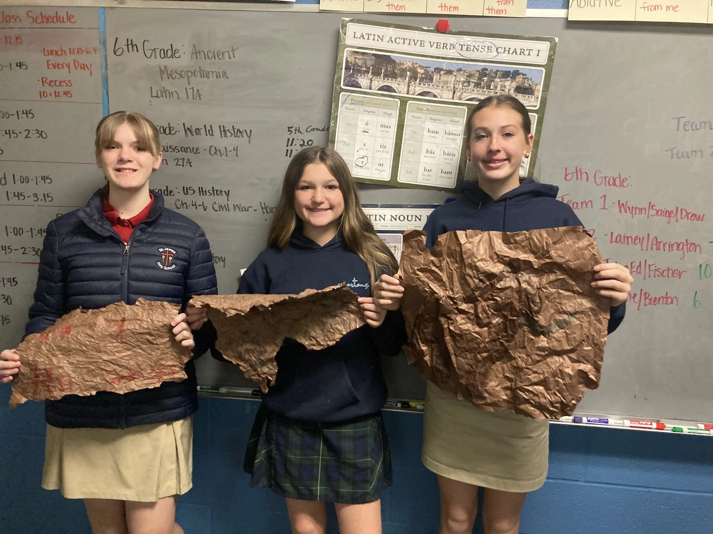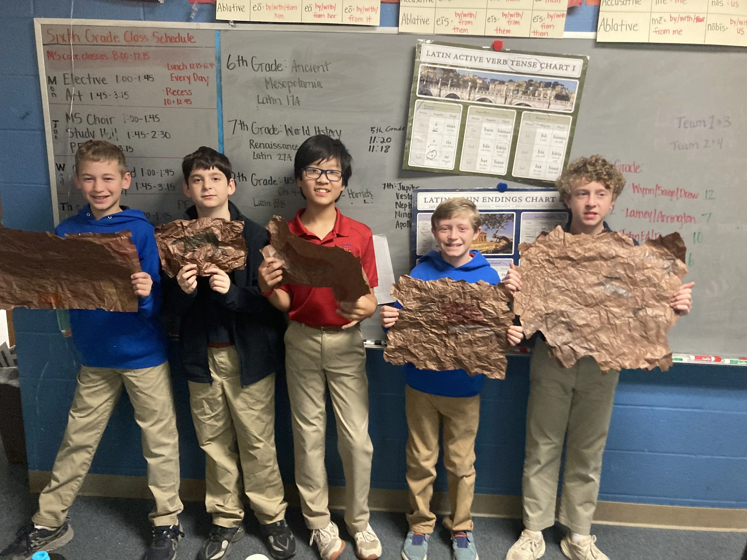 Sixth grade students have been studying the Paleolithic cave paintings found in France, and recreated their own cave art.