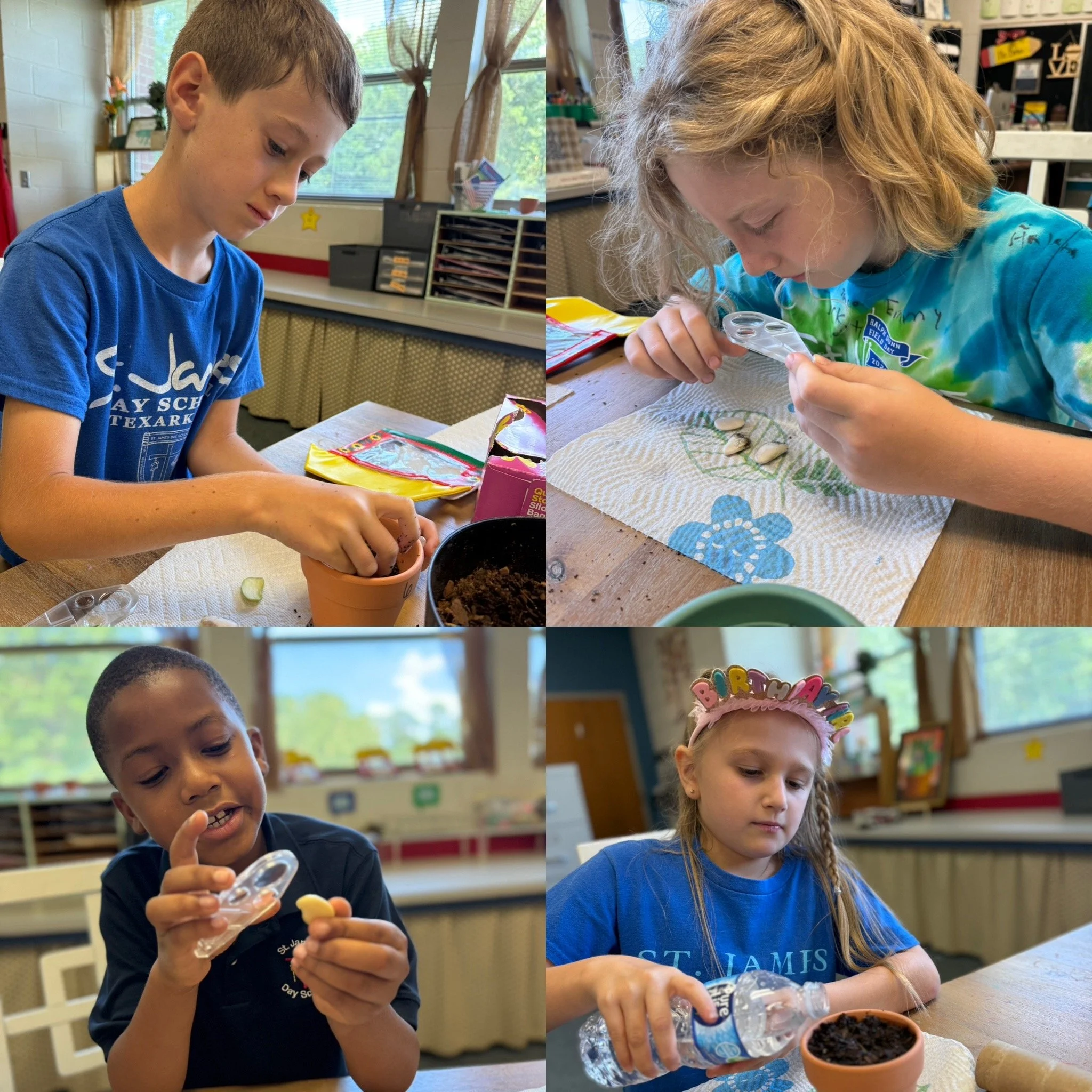 Our Lima bean plants were transferred to pots! But before we planted them, students observed the life cycle as the beans were in the germination stage!